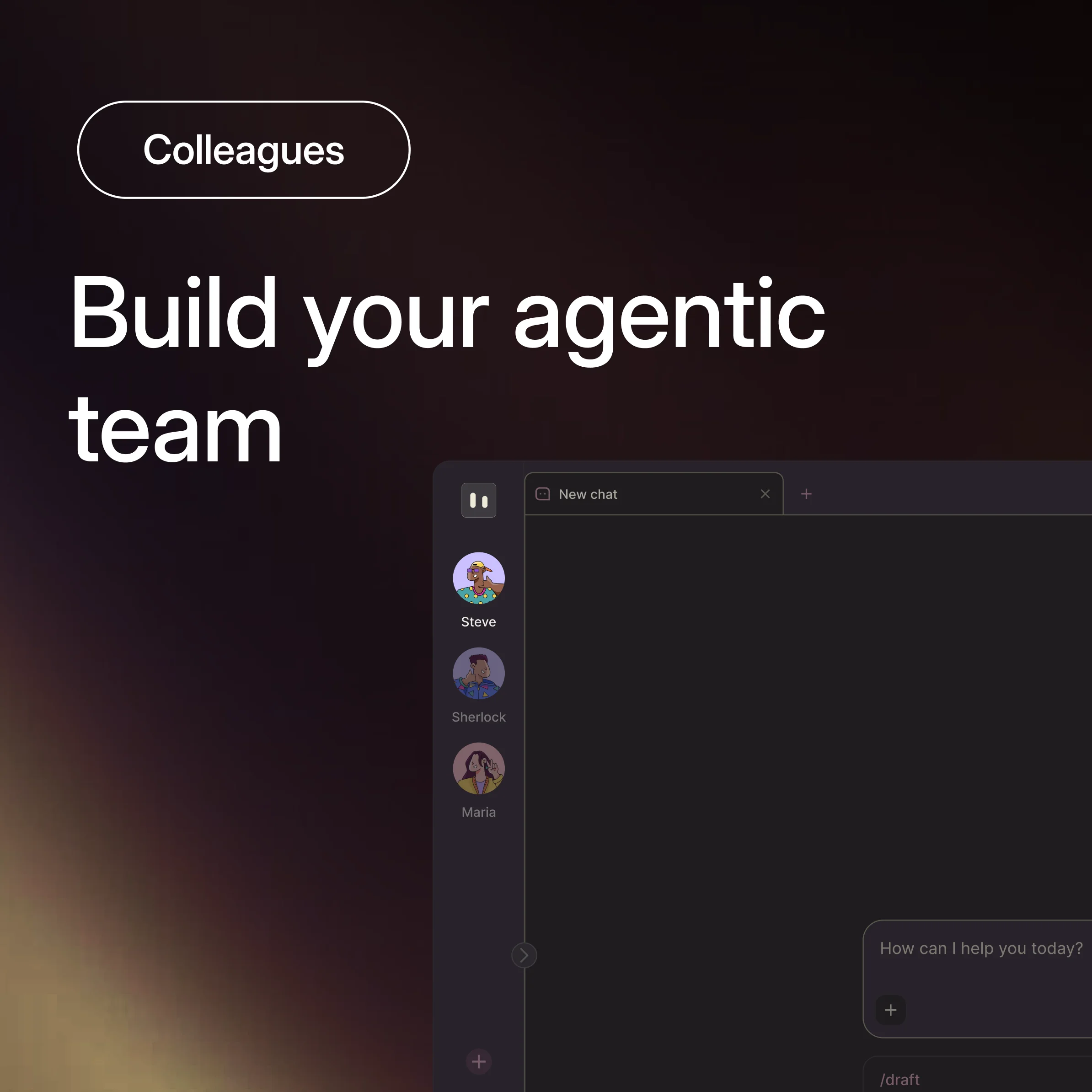 Each colleague is purpose-built for a role with the right skills, permissions, and context. They remember past conversations, learn your preferences, and execute multi-step tasks across your entire stack.